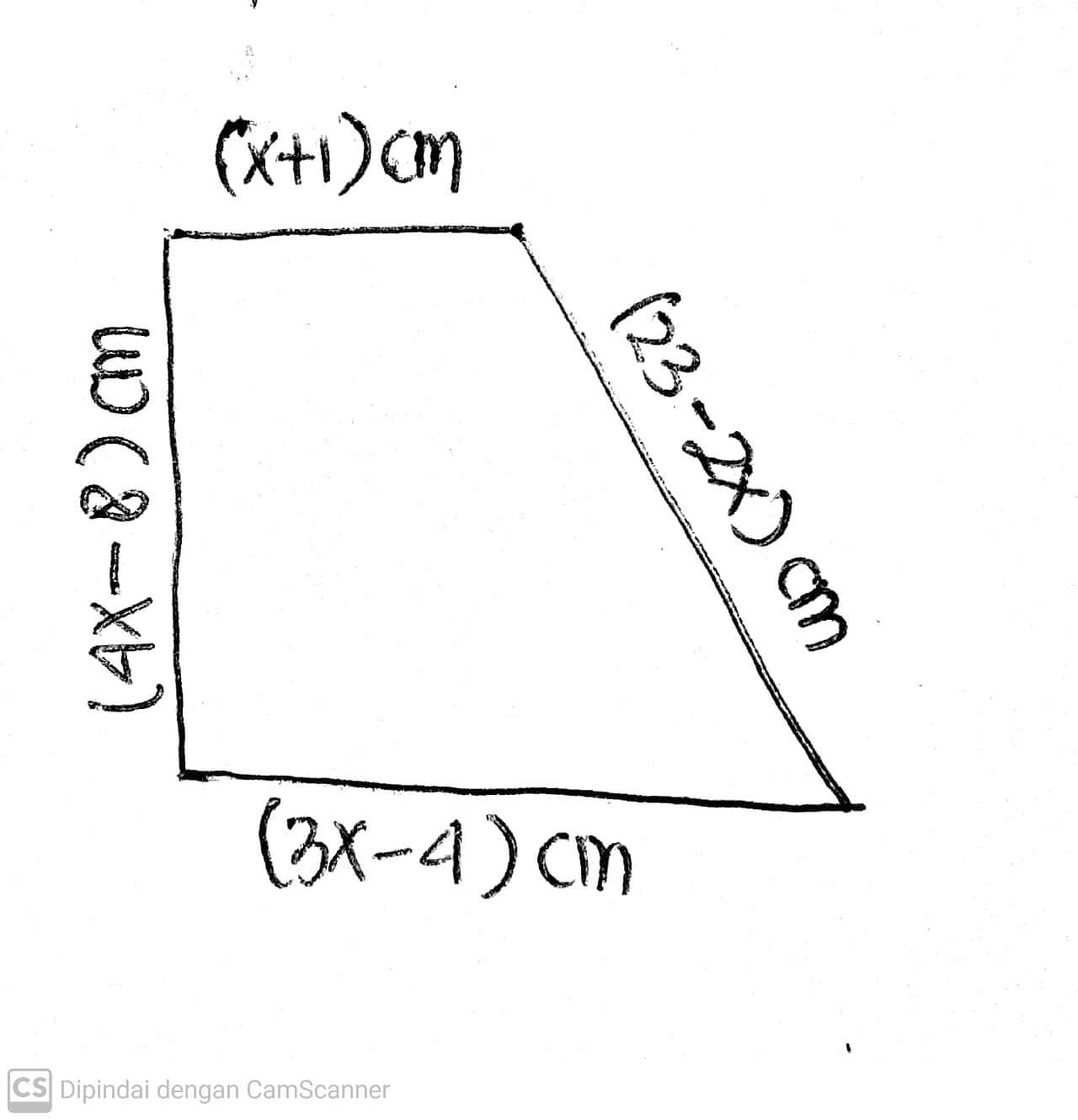 Jika keliling trapesium tersebut kurang dari 42 cm, nilai x yang memenuhi adalah … cm